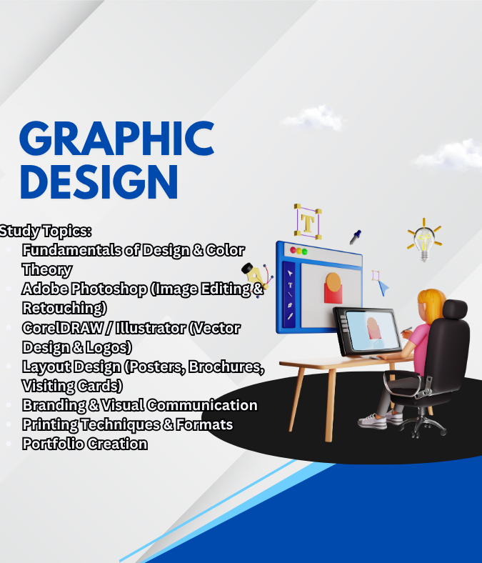 A 12-month professional course covering office tools, Tally with GST, DTP, web designing, and programming (C, C++, Python) — designed to build strong computer and technical skills for career growth.